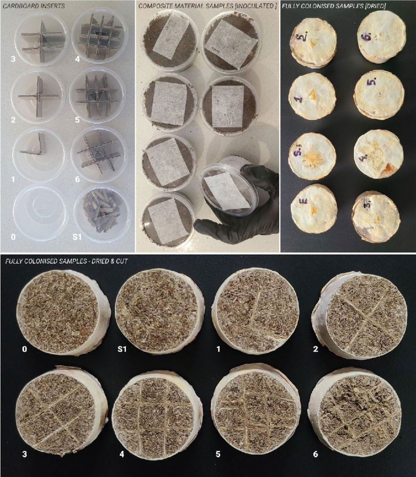 1. Testing mycelium composites using different organic and industrial by-product substrates