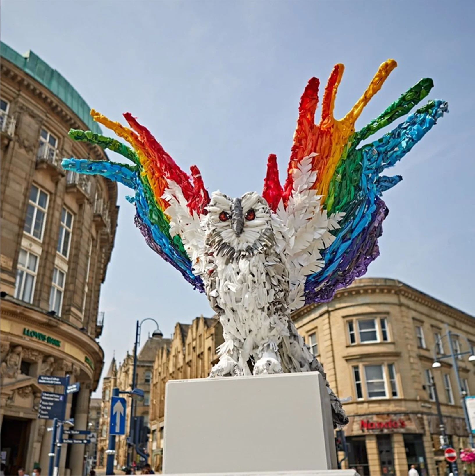 Public sculpture using reclaimed steel and scrap plastic